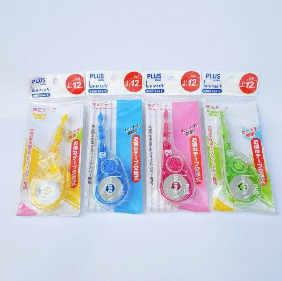 Băng xóa to Plus WH-105T (5mm x 12m) - Băng xóa Plus WH-105T là dạng bút kéo băng, rất phù hợp cho học sinh, sinh viên, giáo viên và nhân viên văn phòng nhờ thiết kế nhỏ gọn, dễ mang đi di chuyển nhiều nơi, dùng để che đi đoạn văn bản bị sai mà không làm bẩn giấy và không làm ướt giấy, chữ viết đè lên cũng không bị nhòe nét chữ - Có Ruột băng xóa Plus WH-105TR thay thế khi dùng hết băng trong bút, giúp tiết kiệm chi phí - Màu sắc: Trắng, vàng, đỏ, cam, hồng, xah dương, xanh lá.... - Kích thước: bản rộng 5mm, chiều dài băng xóa là 12m - Quy cách: hộp 12 chiếc