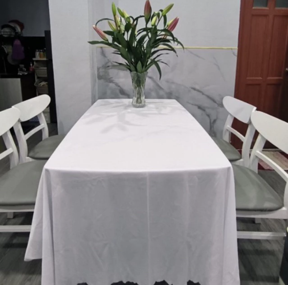 Khăn trải bàn màu trắng dùng trải bàn tiệc, nhà hàng, trải bàn decor