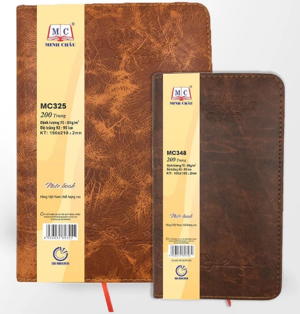 ✅ Bìa ngoài của sổ Minh Châu được làm bằng chất liệu da cao cấp có độ bền siêu tốt, thiết kế lịch lãm, sang trọng; đường may viền sổ tỉ mỉ, trau chuốt và sắc nét.